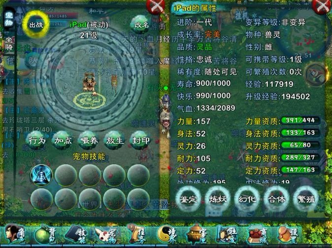 装备可以通过鉴定、合成、镶嵌等多种方式提升。宠物也可以通过加点、喂养、封印、炼化、幻化、合体、繁殖(貌似现在还没有开这个功能)进行提升。总之功能多的让人目不暇接,想成为高玩,需要下很大的功夫哦。