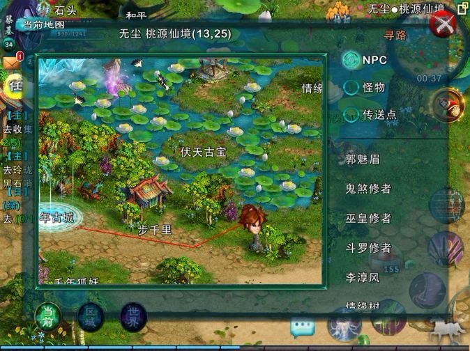 我认为地图系统是很强大的,在地图中可以直接点取任何位置,便能直接实现人物移动。而且,在地图右边栏有所有NPC的名字和导航,非常非常的方便,尤其是在主城的时候,寻找NPC不再有任何难题了。