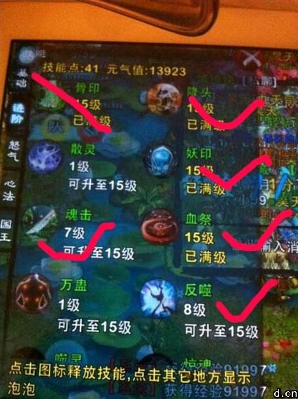 上面的技能是所列举出来必须点满的技能,有人会问我,为什么减速跟撕裂不用,触发几率太低,1级就够了。