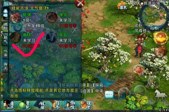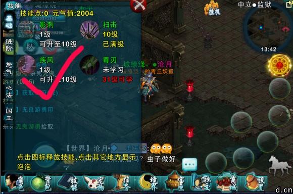 忘仙每一个技能释放都有一个冷却,而这个冷却时间大概在0,5秒,放两个单体,左手摇动按钮。