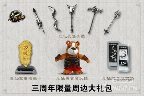 为了让参与见面会的仙友们玩的更嗨,本次周年庆项目组特意制作了包括“金沙石万灵榜摆件”、“合金忘仙武器套装”、“忘仙3周年纪念银条”、“忘仙3周年纪念版大熊玩偶”、“忘仙3周年纪念版T恤”的限量周边大礼包,到场玩家均可领取。同时现场抽奖和互动小游戏环节还将送出暗夜圣虎、混沌暴君、九尾妖狐等游戏中极其珍稀的宠物道具!