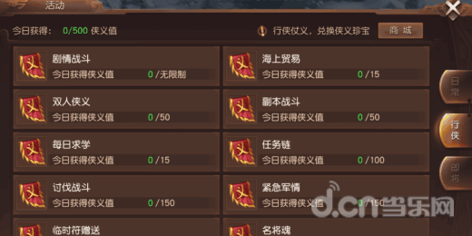 在活动界面中玩家可以看到每天的行侠记录,正所谓日行一善,侠之大义者!