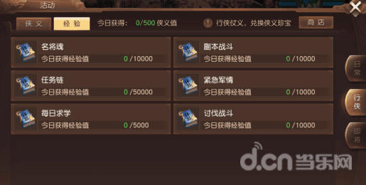 日常任务也有很多经验,注意哦,游戏没有经验找回的功能,不过经验赶不上第一梯队也不要慌张,低等级玩家可以享受经验加成。同时,开发组贴心为各位大侠准备了经验任务的归类:活动—行侠—经验,这里可以检测自己每天是否将经验都拿到手了。