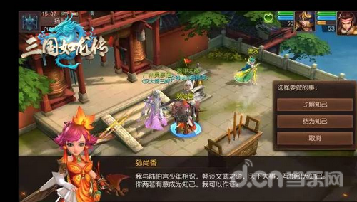 人生难得一知己,千古知音最难觅。在《三国如龙传》的世界里就能相遇有情人,少侠赶紧与有情人结为知己,共谱良缘吧。