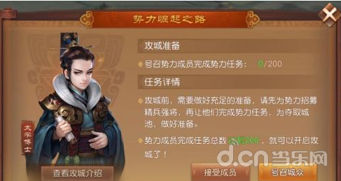 城主需要先召募势力成员,再号召势力成员积极完成势力任务。势力成员完成任务总数达到200即完成任务。