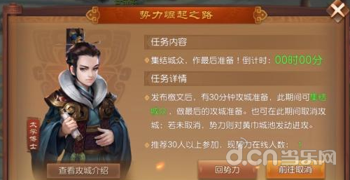 这个任务会同步给所有势力成员。在夺城战前,有30分钟的倒计时,在此期间可以做最后的战前动员和组队、布阵等准备工作。