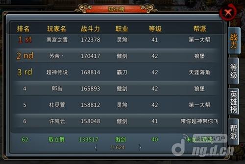 排行榜有很多榜单,英雄榜排行,帮派排行,战斗力排行,等级排行等,肯定有大家擅长的地方!