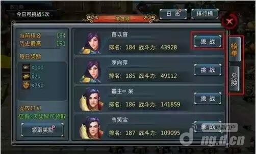 若挑战成功,目标的排名高于玩家,则玩家与其交换名次,目标的名次低于或等于玩家,则名次不变。