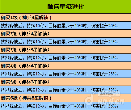 神兵极光轮可以消耗资源进行升星,升星后属性将以百分比提升。另外神轮升至3星级时将解锁神轮技能BUFF——御灵,当神轮技能释放后会触发此BUFF效果,并持续一段时间。神兵星级提升越高,效果越强!