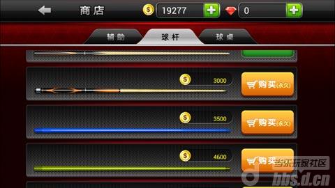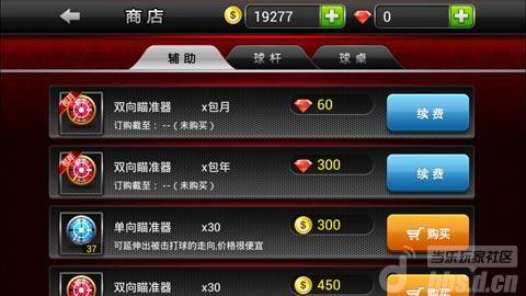 游戏中设有三种道具,分别是单向瞄准器、双向瞄准器和解球器。单向瞄准器是只显示目标球的路径,双向瞄准器增加了白球的路径,解球器则可以显示球撞库后的完整路径。这里面双向瞄准器的用处相对来说最普遍,不过他的购买方式可以有金币和钻石(RMB)两种。因此较好的平衡了非R和付费玩家间的差距,竞技游戏还是要靠技术来比拼才更有乐趣。