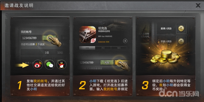 招募好友奖励不断,发展新人加入战场,每升级到固定等级,引荐人和新人均可获得诱人金币奖励!