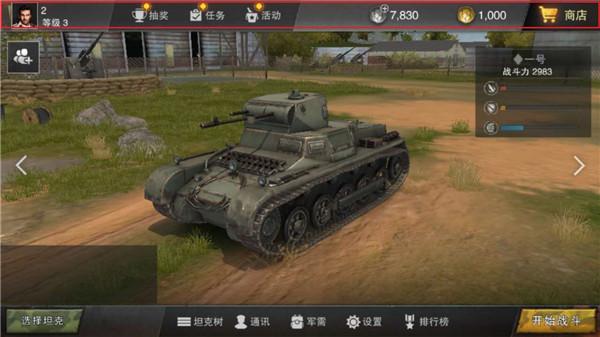 界面的下方主要是游戏里的各种功能,你可以点开坦克树查看各个国家的坦克,也可以在排行榜里查一下自己是否荣登榜上,物资什么的可以在军需里面看到。