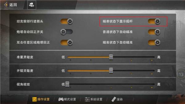 在操作设置中,有一项功能需要大家手动开启,这样就可以在开镜的同时操作坦克啦。