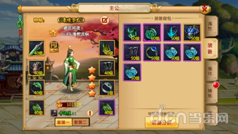 主公与武将不同,主公可以装备八件装备,为饰品X2,戒指X2,武器,帽子,衣服,鞋子。装备的品质按照颜色来区分为白,绿,蓝,紫,橙。其中橙装最好,有些橙装会附带一些幸运值。
