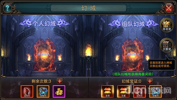 魔域和神域都分别有三种特殊的战斗模式,分别为奇兽域、金迷域、深渊域,这三种不同模式为随机选择。