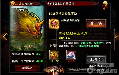 有怪兽,大怪兽,丑怪兽,粘著我。新资料片里的《格斗江湖》只要有玩家召唤BOSS之后,其他玩家都可以免费参与挑战,一同打败BOSS赢取丰厚的奖励和元宝喔。你不用怕人越多分配的奖励越少,我们的游戏对玩家都是很大方的呢,参与挑战的人越多,每个人拿到的奖励就越多,每天还有3次机会参与挑战BOSS呢。