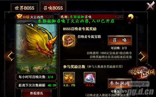 《格斗江湖》世界BOSS全新玩法,全服玩家都能召唤BOSS和参与挑战BOSS喽!如果你是服务器土豪的话,你可以消耗相应的元宝召唤世界BOSS获得召唤BOSS专属宝箱。大声地告诉你,宝箱里面可是有大量的神翼换点、高级坐骑强化材料和高阶配饰。这不是花小钱赚大钱的节奏吗!
