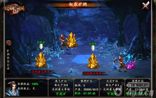 成功抓到奴隶之后,你就是一名矿洞的奴隶主啦。矿洞中一共有四处矿产可挖掘,作为奴隶主的你可以根据不同的条件解锁不同的矿产,一声令下,奴隶便会乖乖帮你挖矿让你拥有元宝和真气丹等奖励。