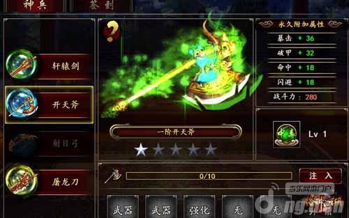 如果玩家觉得激活的神兵一成不变吸引力有点不够,那小编可以负责任地跟大家讲,神兵是可以提升属性的!只要玩家完成神兵升阶所需要的任务,神兵的属性即可大大提升!谁说没有天上掉馅饼的事儿,喏,这不就是嘛。