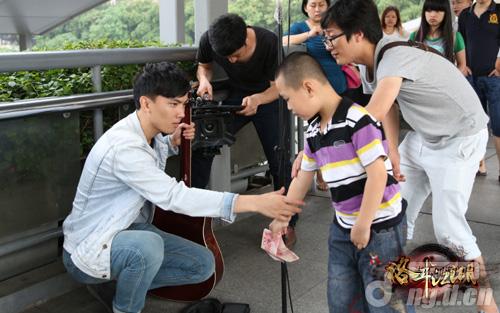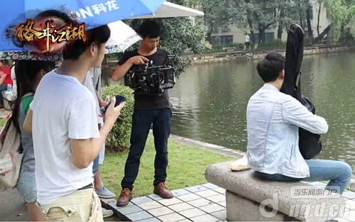 这是一段主角在雨中伤心落寞的镜头,在微电影中是非常重要的一段情节,不过这可苦了演员,要在雨中完成拍摄,看着他身边的剧组人员们都有小伞遮雨,小编都有些不忍心了。