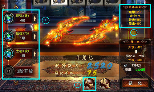 随着武器铸造等级的提升,可解锁更多的镶嵌栏;