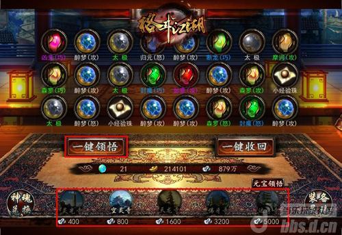 在界面下方,有5个佛寺,玩家可以点击领悟以获取灵珠。不过只能先从最低级的灵光寺领悟,每领悟一次都有几率开启下一个高级的佛寺,同时也可以随机获得一个灵珠。在高级的佛寺中,领悟到高品阶灵珠的概率更高。