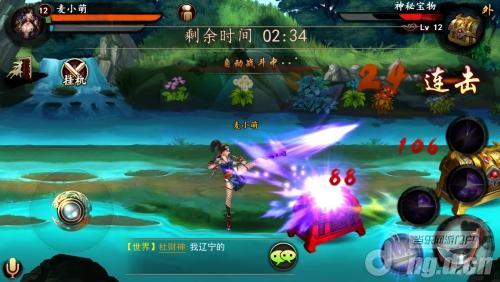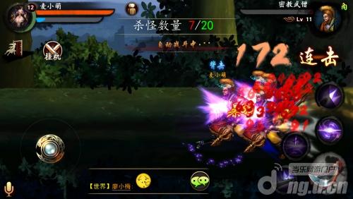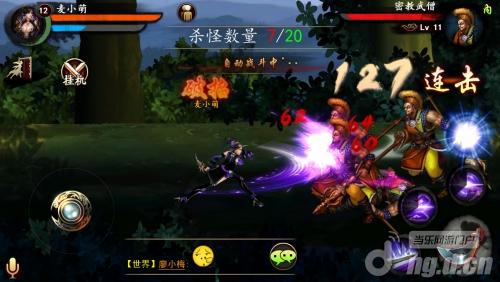游戏中虽然有自动挂机键,可是就连小编这种懒人都要亲自上阵,感觉这酣畅的打击快感,相信大部分玩家除了特殊情况外,也都不会轻易选择自动挂机吧!不过,小编为了方便截图,可耻的用了挂机。虽然打击感没了,但是炫丽的光声技术,还是很具观赏性的哦。