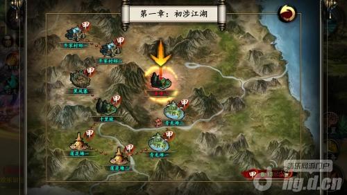 武侠最好的体现元素就是中国风,中国元素中最好的体现形式就是水墨画。《格斗江湖》中大范围使用水墨画,对话框、过场画面、战斗场景、副本地图等,使得游戏充满了浓情的武侠感。