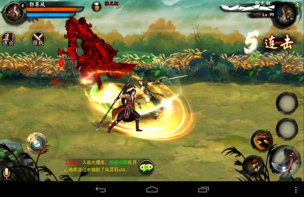《格斗江湖》这款游戏的画面非常的精美。中国古典元素和水墨画元素搭配出了非常浓厚的画面效果,使画面看起来非常的具有中国风。武侠最好的体现就是中国风,金庸的武侠小说已经深入了每个中国人的心。中国风的运用使得了这款游戏的画面充满了很武侠感,增加了武侠格斗风。
