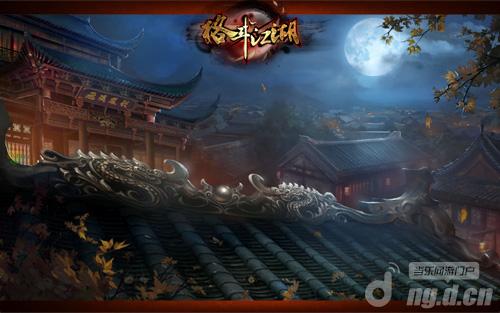 视野由铺满瓦片的龙雕屋顶展开,一轮硕大浑圆的明月被片片夜晚的云似遮非遮,能看到云雾缭绕,却仍能沐浴到皎白月光。高于屋顶的梧桐树上一片片随风落下随风飘起的泛黄树叶在屋顶起舞。这样的画面真的是太美了,能用3D的视觉感受展开江湖的第一幕,我不得不说,这一幕已经确定了我要入驻这江湖。