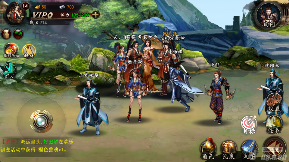先说下游戏题材,古典武侠,人名以及地名极具中国风,不过人名与金庸武侠小说里面的人物只是谐音想通,这样确实对部分追求极致的玩家来说是有点倒胃口的,或许是为了躲避版权追究,感觉有点得不偿失。