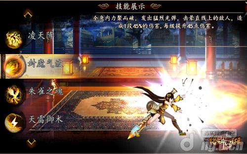 封魔气波:全身内力聚集而迸发,一刹那光动耀眼,魔神闪避,破击敌人于数丈之外。击晕直线上的敌人,造成1段450%的伤害。