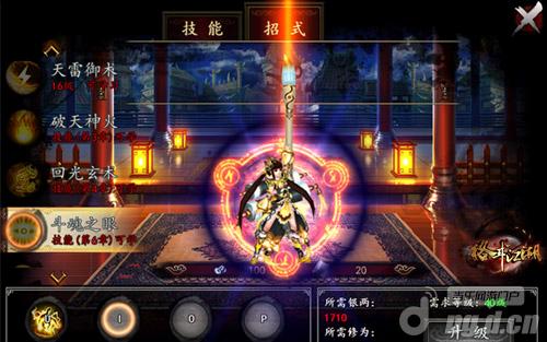 破天神火:天火雷动之阵法,一旦召唤,前方敌人灭于瞬间,造成10段80%的伤害和1段200%的伤害。