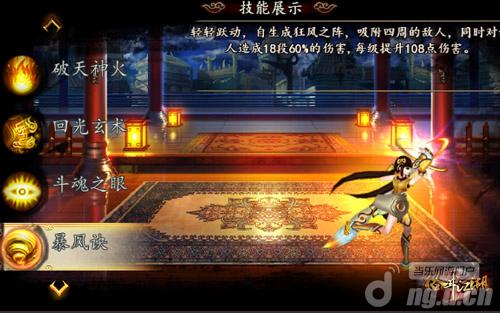 暴风诀:轻轻跃动,自生成暴风之阵,吸附四周的敌人,同时对敌人造成18段60%的伤害。