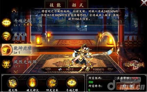 凌天阵:霸气阵法瞬间而成,发动万丈灵光,带动敌人凌天而起,阵内敌人全部浮空并受到5段100%的伤害。