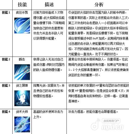 不需要太多描述,他就是最强物理输出。除此外,剑圣的大招最后一击有打断敌人释放的效果,2技能瞬击也可以有一小段无敌时间,3技能自身回血的恢复效果非常好,而且恢复后提高物抗和法抗,所以原力剑圣真的很强。如果说弱点的话应该就是他站位靠前,但却没有一般坦克的高抗性,并且大招释放后能量不断的下降比较难释放出第二次大招,同样想要获得原力剑圣是非常难得,不是有钱就可以,因为他只在特定活动中出现。