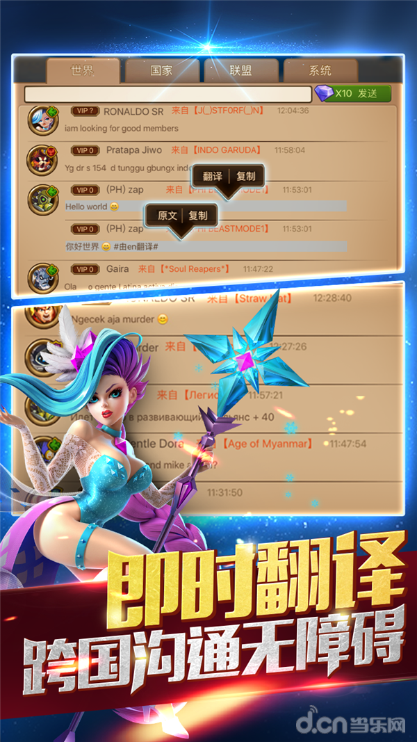 《MR魔法英雄》拥有能够帮助中国玩家与海外玩家无障碍交流的翻译功能,无论是英语、俄语、法语,还是中东土豪们的文字,统统都可以翻译成中文。并且对游戏还对常用名词进行了梳理,比如游戏里的角色名就可以直接对译成为当地文字。