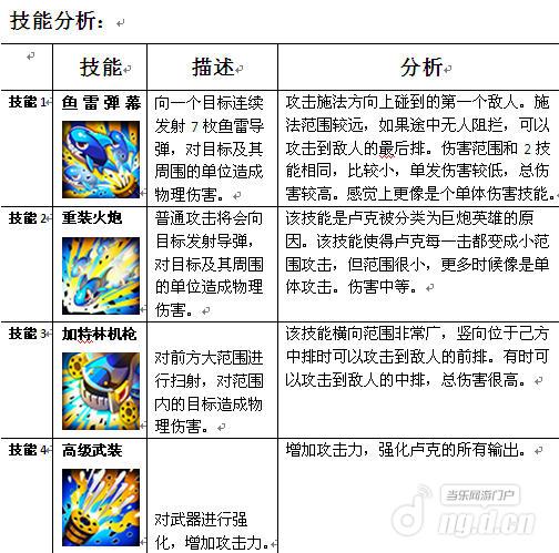 特点:能提供强大的前排火力,定位就是一个不动的炮台。没有控制等其他的能力。