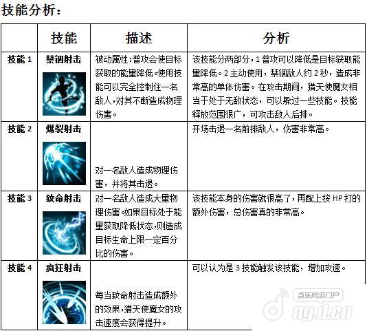 猎天使魔女是个单体输出高的英雄,但没有AOE和站位比较靠前一定程度上限制了她的发挥