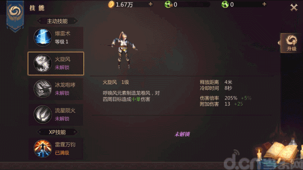 技能点评:火旋风释放时,是以法师为中心,辐射周围的敌人,且只是前期可对敌人造成伤害。所以大家在释放时,一定要把握释放时机。