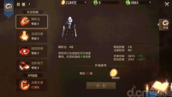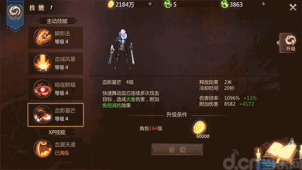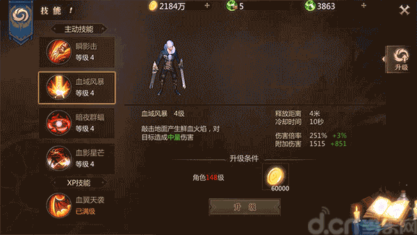 点评:血域风暴是群体技能,释放后对周围一定范围内的敌人造成伤害,而且输出能力比瞬影击要高一些,在清怪、群战时效果显著!
