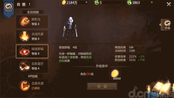 点评:暗夜群蝠是血族最好用的技能,没有之一!该技能可持续一段时间,可以用来输出,也可以用来跑路。PK刷怪的首选!