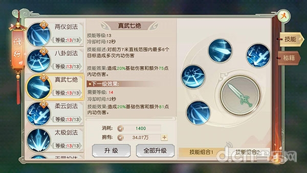 利用强大的内力制造一个剑气保护罩,可吸收大量伤害,提高大幅生存能力