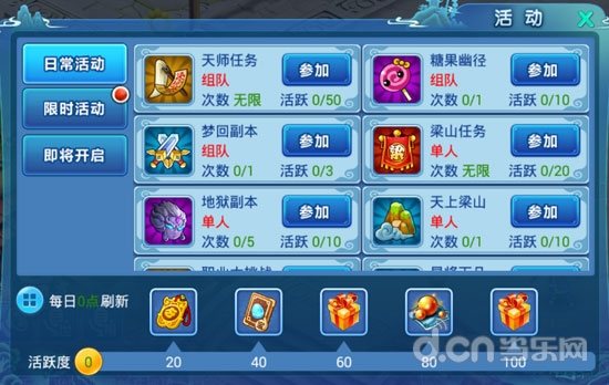 在《水浒Q传》手游中当达到一定的活跃度时就可以领取相应的奖励,对于很多平民玩家来说活跃度的奖励还是非常不错的。不过,对于休闲玩家以及玩游戏时间比较少的玩家来说还是很难每天都完成的。今天小编就给大家分享怎么在1个小时内速刷100点活跃度攻略,希望对大家有所帮助。