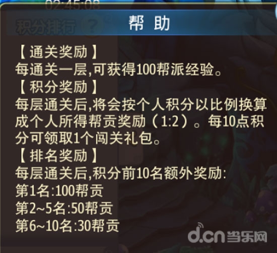 2:所有帮派成员的积分累计达到100,即可通关一层。特别要注意的是,无论挑战何种难度,如果挑战失败,则不会获得积分,所以要量力而行,选择适合自己的难度和NPC进行挑战。