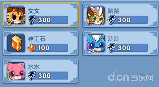 文文—血攻宠物、跳跳—敏攻宠物、浒浒—物理宠物、水水—群法宠物。