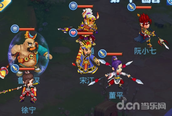 特点:对面是一支强输出队伍。徐宁的【横扫千军】、董平和阮小七的【势如破竹】、鲁智深的【长驱直入】都是AOE伤害,如果不够肉,一回合后, 个个都被消耗得差不多残血。