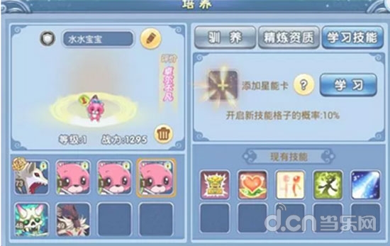 然后每个召唤兽都拥有学习的技能哦,有提炼和精炼两个过程!!只要完成这两个过程,就可以替换掉现有的资质属性!!获得一个全新的资质属性哦!(免投胎直接原地重生有木有,老厉害了)!想要召唤兽拥有更多技能格,水粉们可以用低级星能卡去开格子,格子开好后,然后再填充高级技能~又或者,用高级性能卡去开格子(土豪的世界我们不懂)?万一直接获得一个全新的资质属性而原来的又保留了呢?