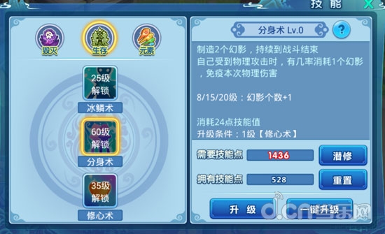 1:潜修,每隔10分钟可以获得一定技能点,无论在线或离线。人物等级越高可得技能点越多,潜修时间最长为8小时。(月卡、半年卡用户可延长至12、24小时并额外获得50%、100%的潜修技能点)