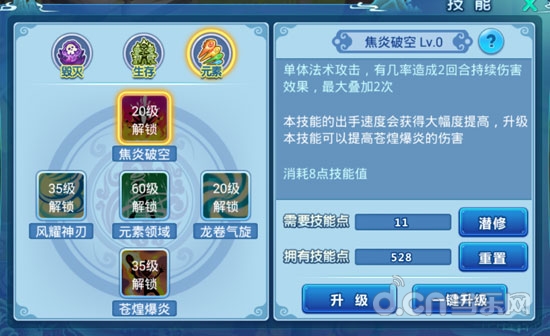 这两个技能,有几率造成2回合持续伤害效果。升级【焦炎破空】可以提高【苍煌爆炎】的伤害。